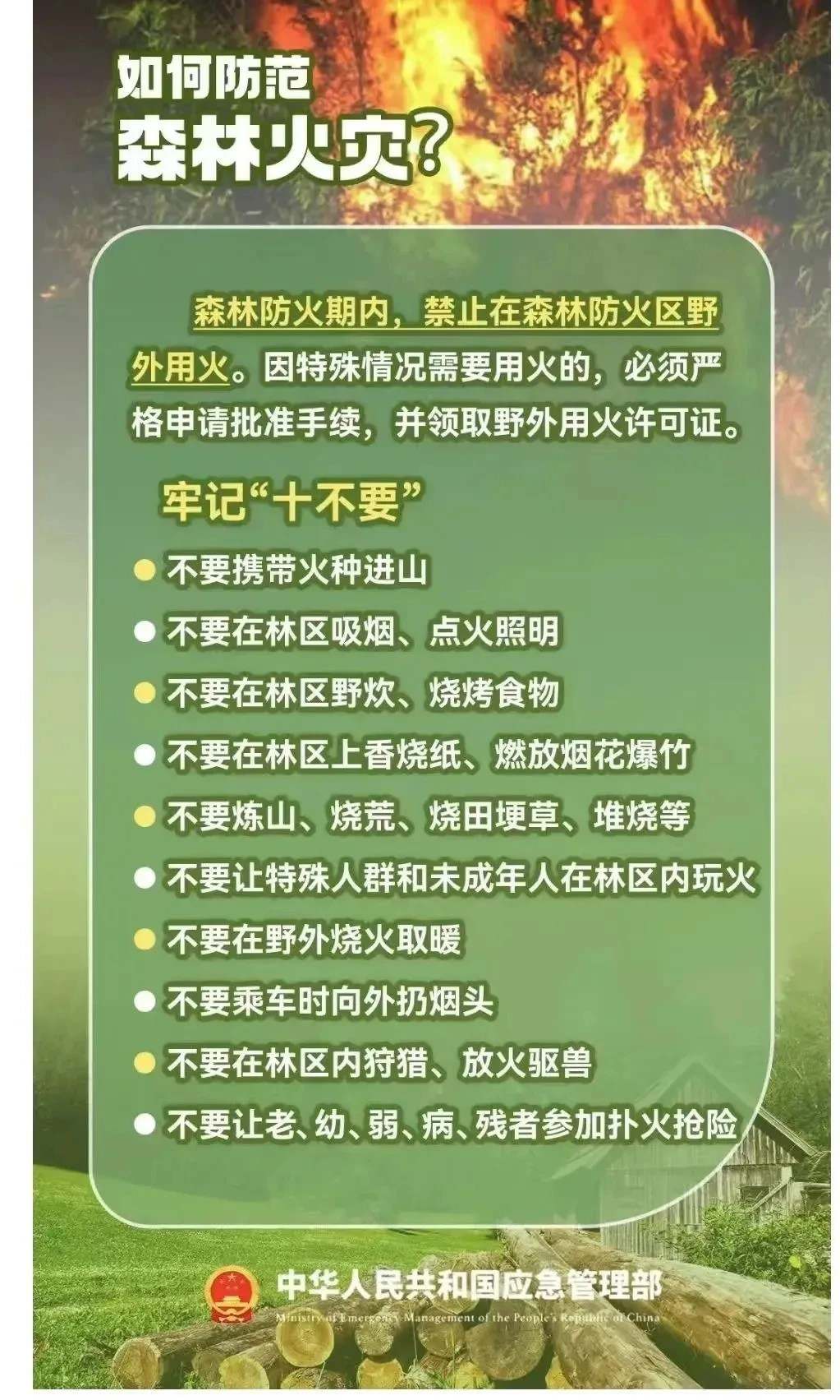 春季天干物燥森林火灾风险增加违规用火引发森林火灾将承担法律责任以及如何防范森林火灾