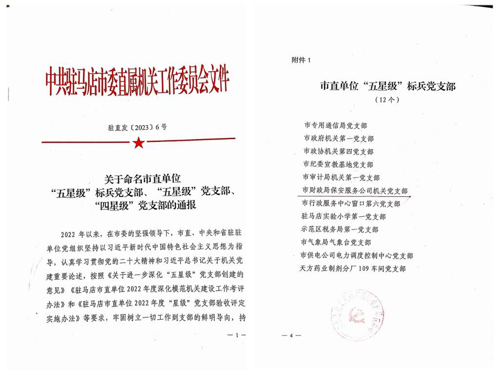 4月25日上午10时,在驻马店市直工委组织的“2023年驻马店市机关党的工作会议暨2022年席驻马店市直单位模范机关创建工作表彰会”上,驻马店市保安服务有限公司两次走上领奖台接受表彰。