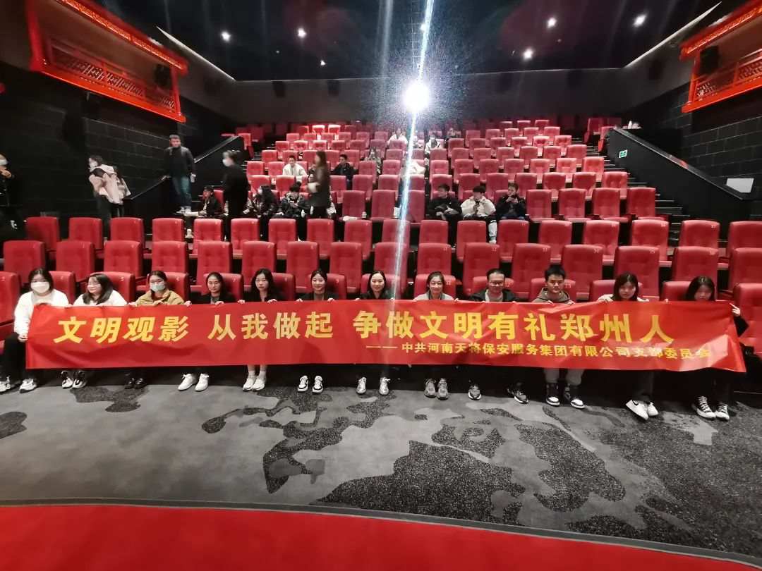 11月17日下午,由郑州市金水区总工会、未来路街道工会联合会联合主办;河南天将保安服务集团有限公司机关党员、志愿者,以党员学习暨《文明观影从我做起争做文明有礼郑州人》主题观影活动在金水区郑州嘉辰影院(LUXE海尚店)举办。