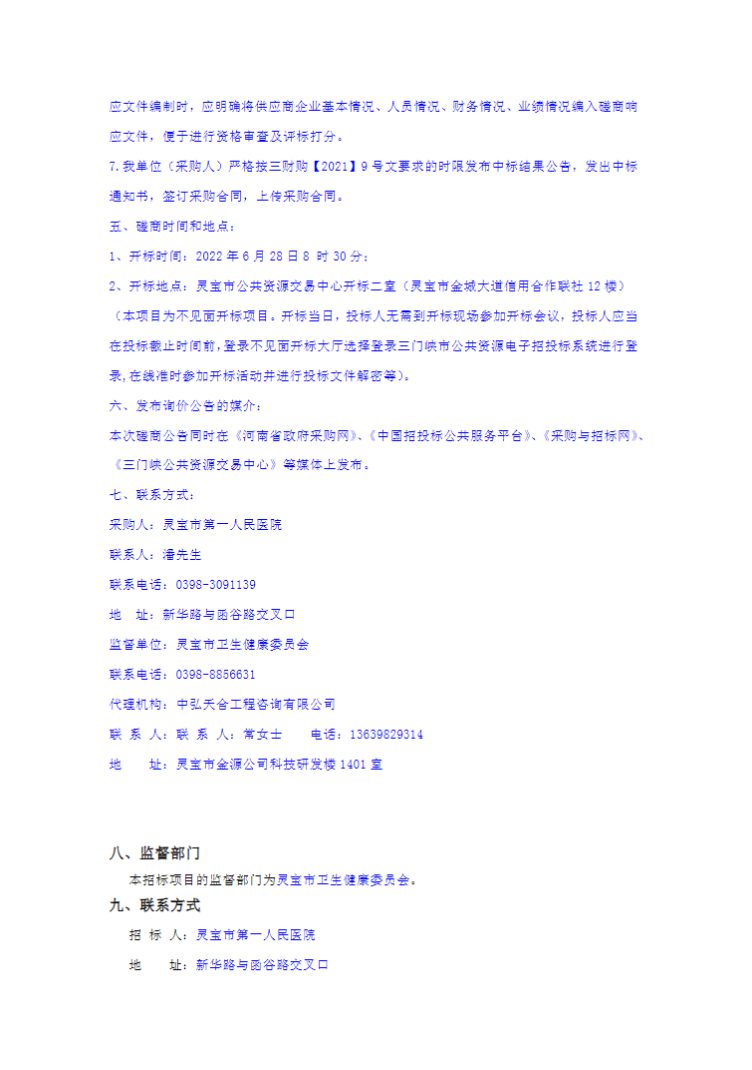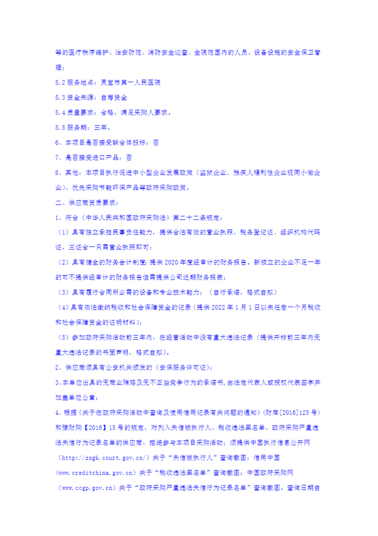 灵宝市第一人民医院安保服务采购项目竞争性磋商公告