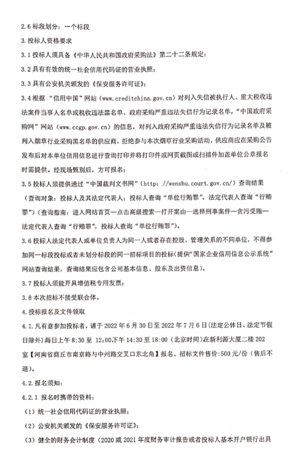 河南省烟草公司商丘市公司保安服务项目招标公告
