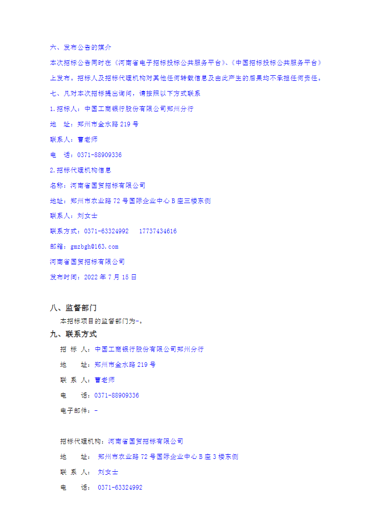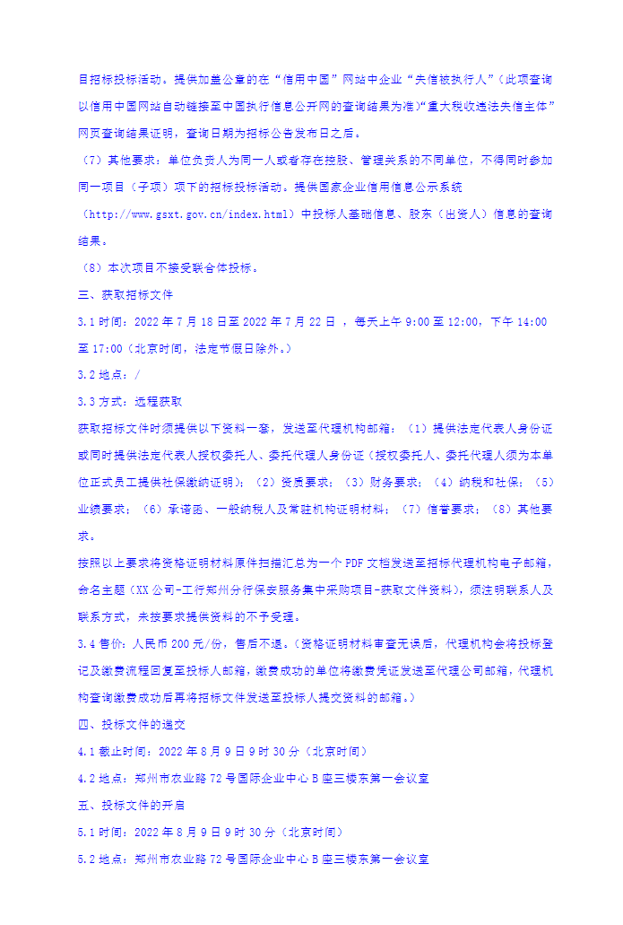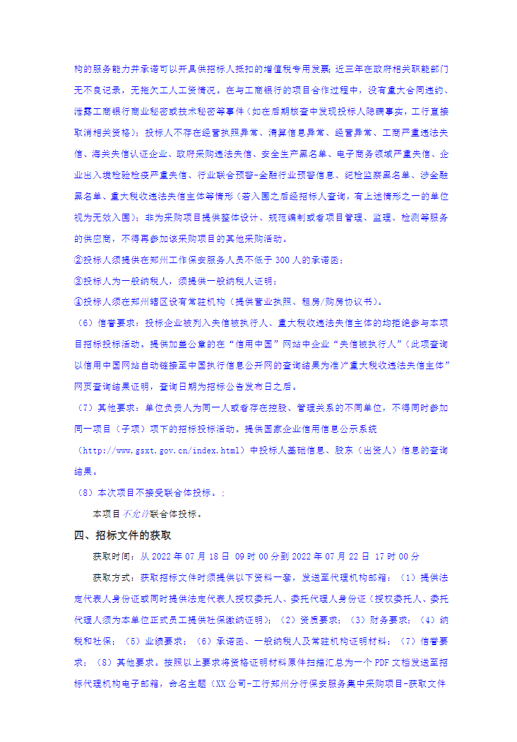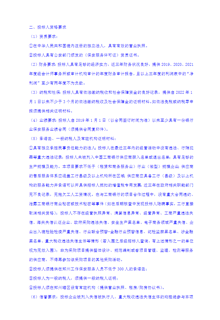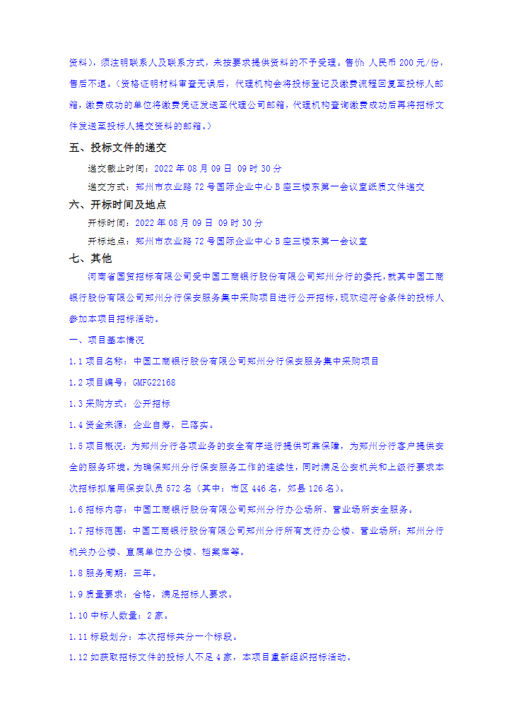 中国工商银行股份有限公司郑州分行保安服务集中采购项目招标公告