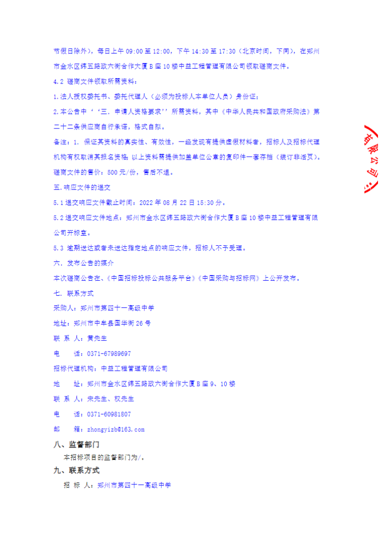 郑州市第四十一高级中学保安服务项目竞争性磋商公告