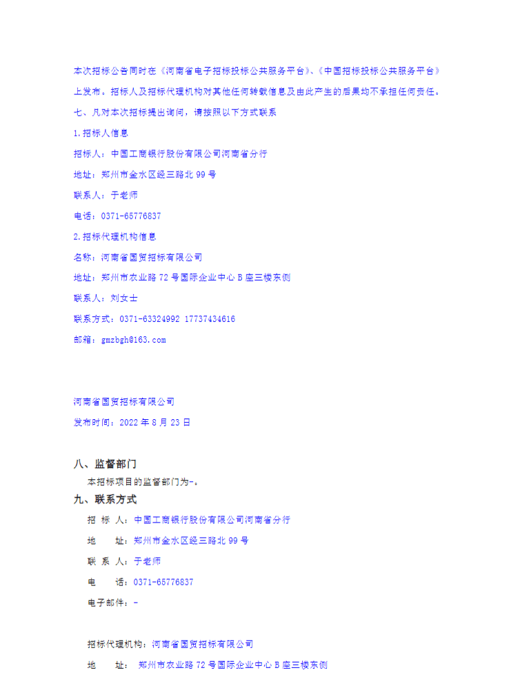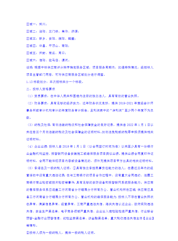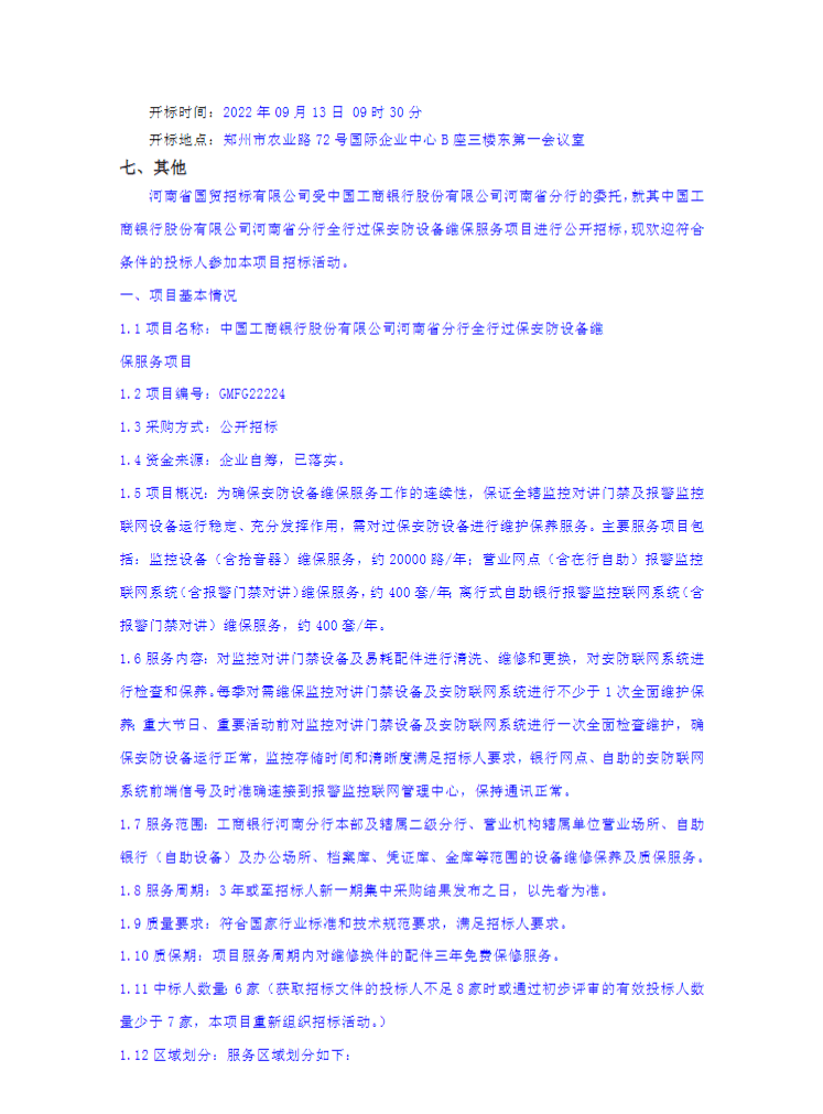 中国工商银行股份有限公司河南省分行全行过保安防设备维保服务项目招标公告