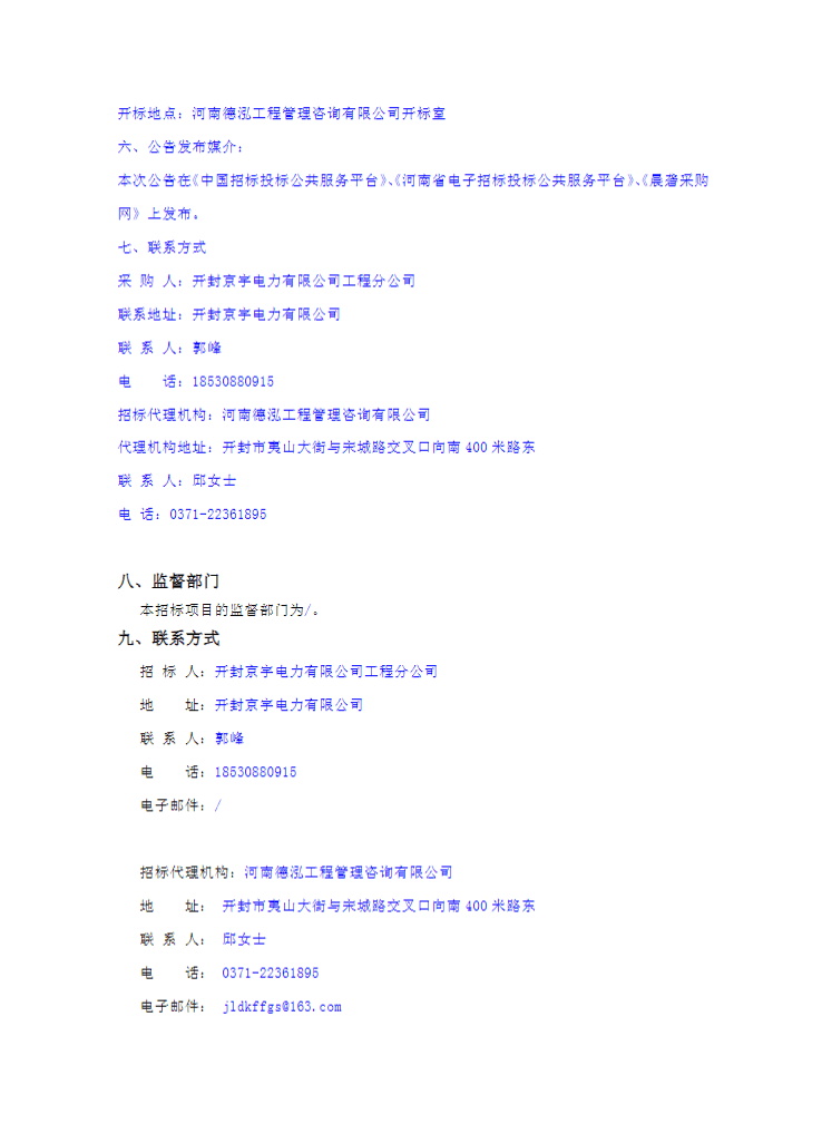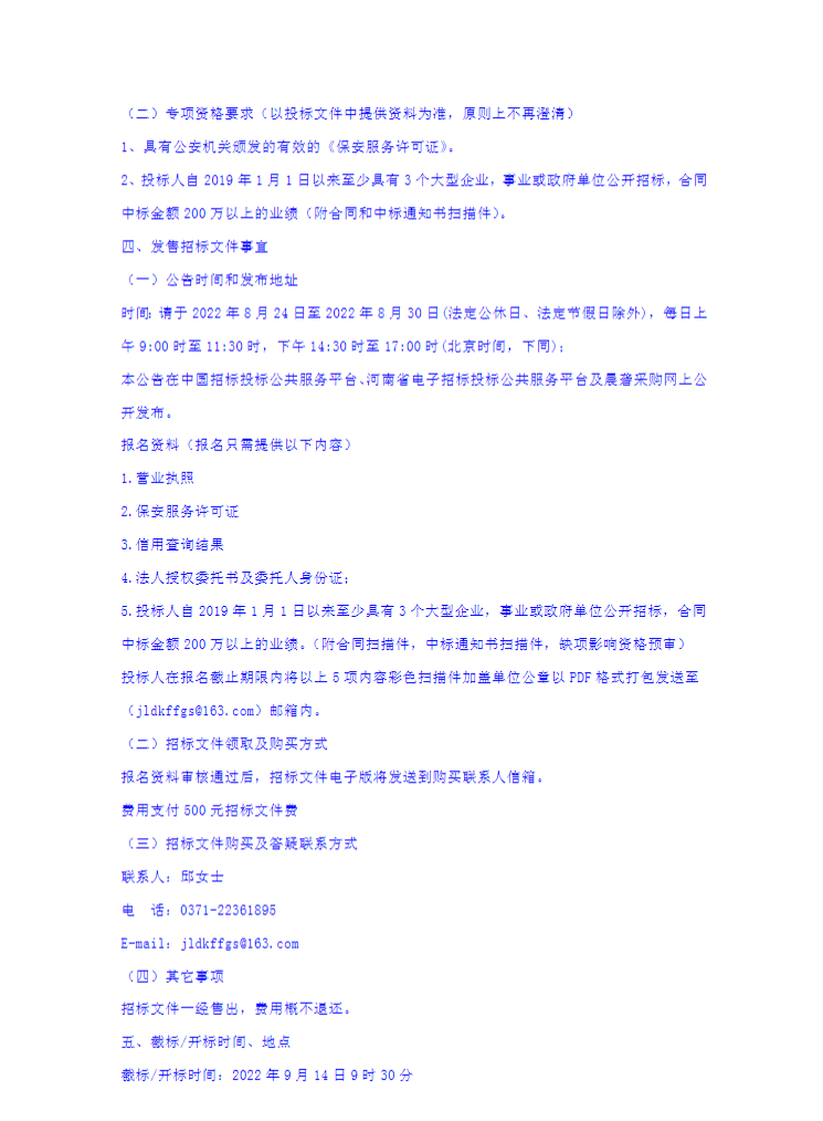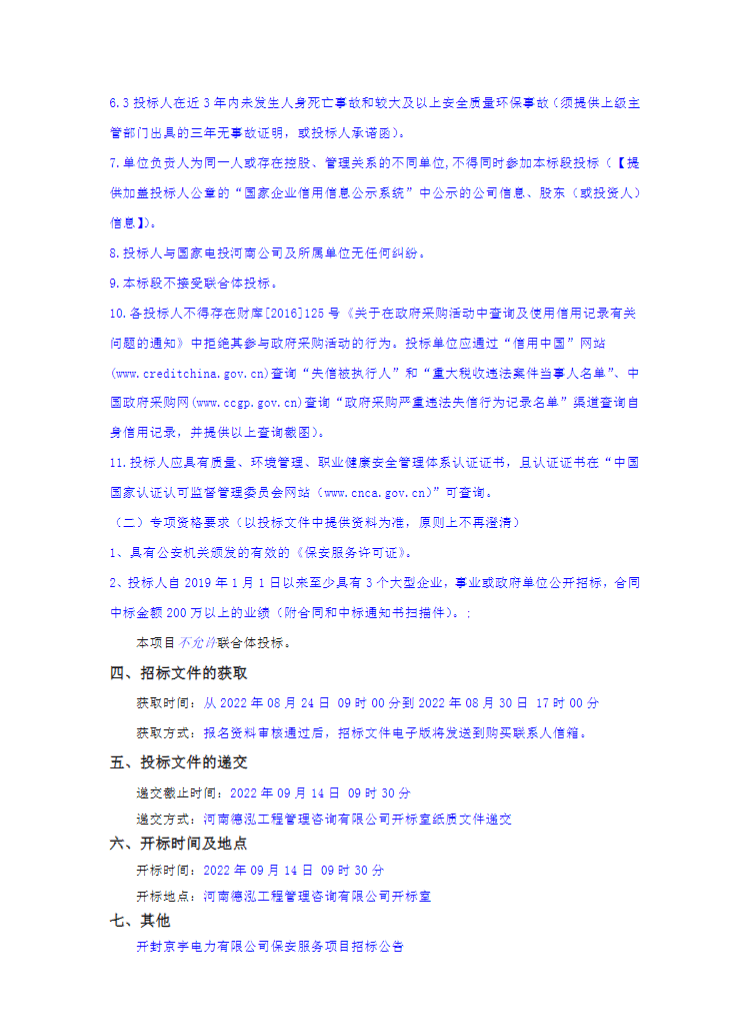 开封京宇电力有限公司保安服务项目招标公告