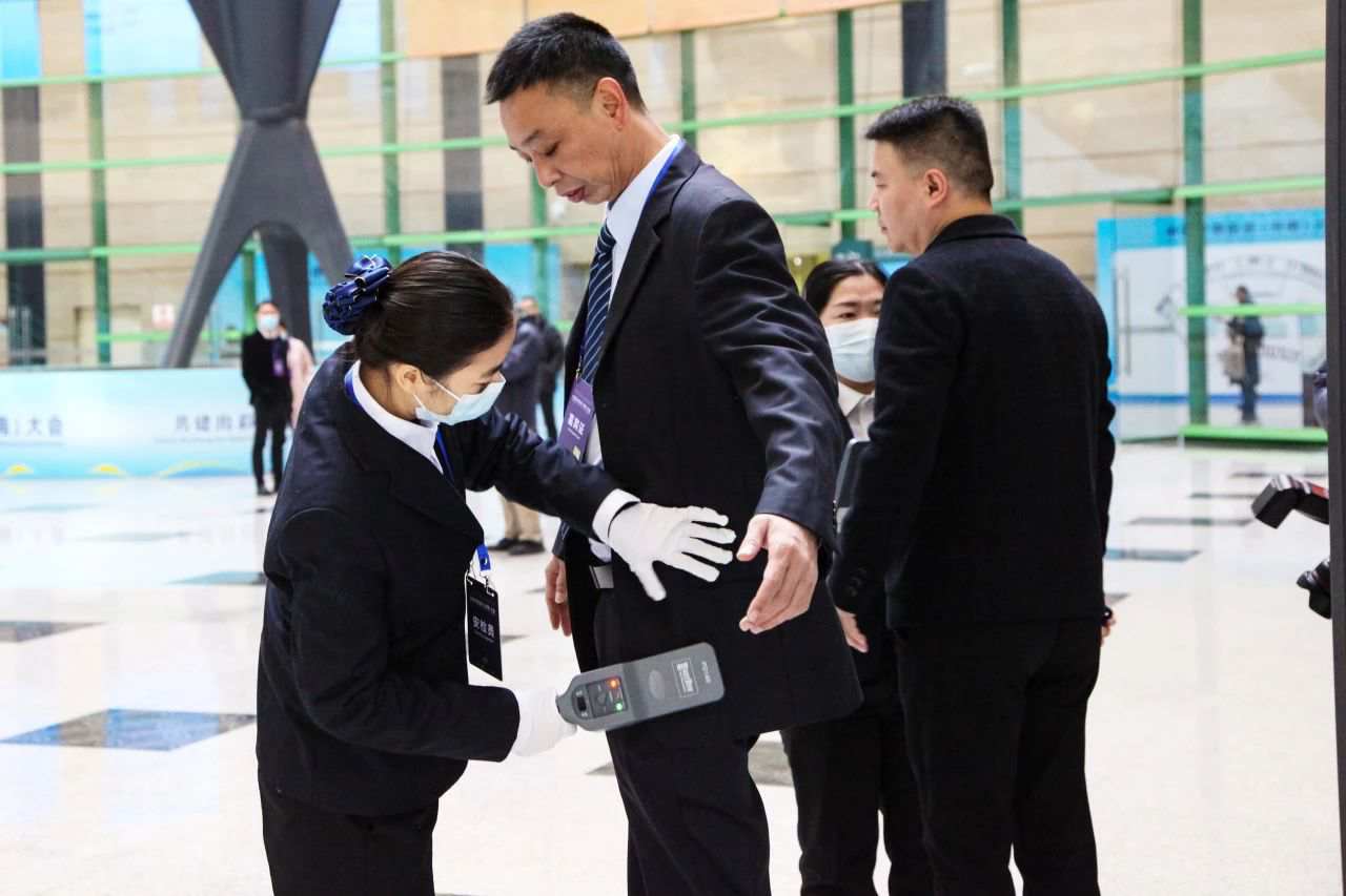 在大会开幕式现场,公司全体执勤人员身着整齐的制服,精神抖擞、一丝不苟地对参会人员进行严格的安全检查,展现出了过硬的业务素质和良好的精神风貌,以高度的责任心和专业性,为大会的成功举办提供了坚实的安全保障。