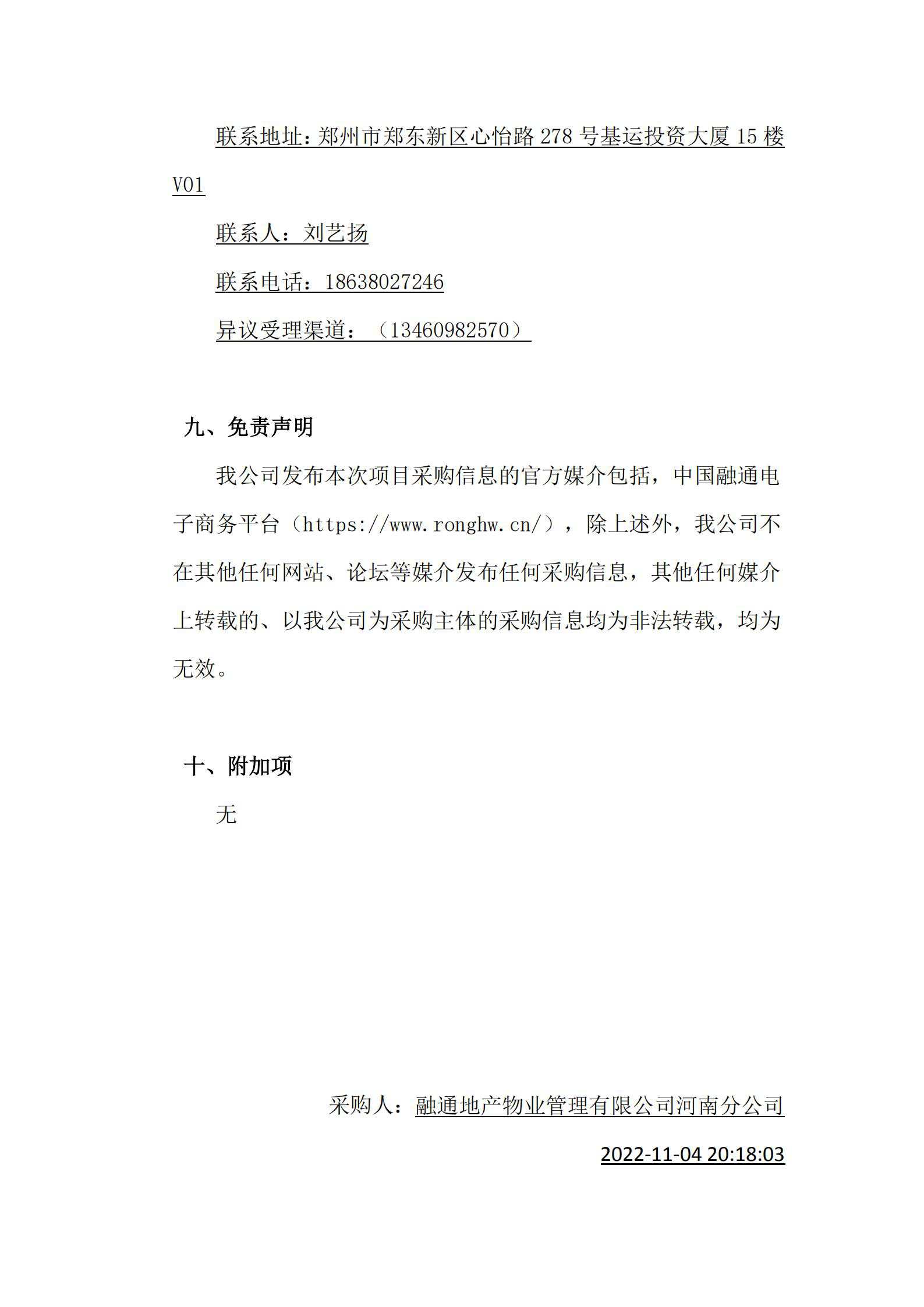 融通物管河南分公司山西区域综合服务项目保安服务采购公开比质比价公告