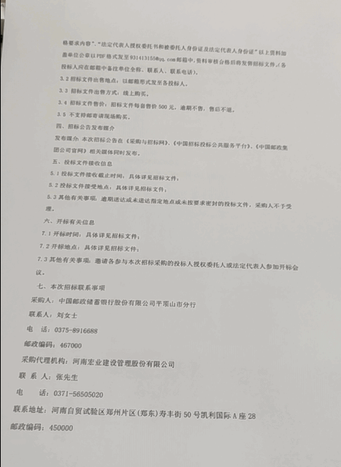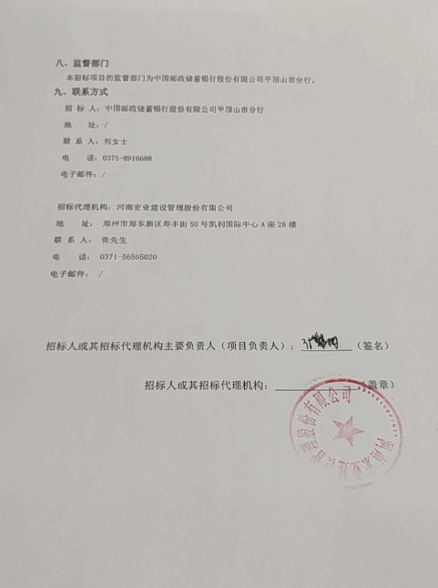中国邮政储蓄银行股份有限公司平顶山市分行保安服务采购项目招标公告