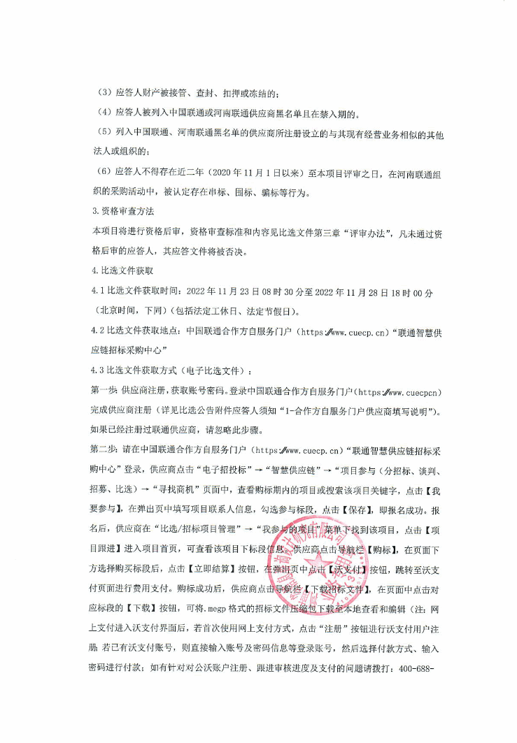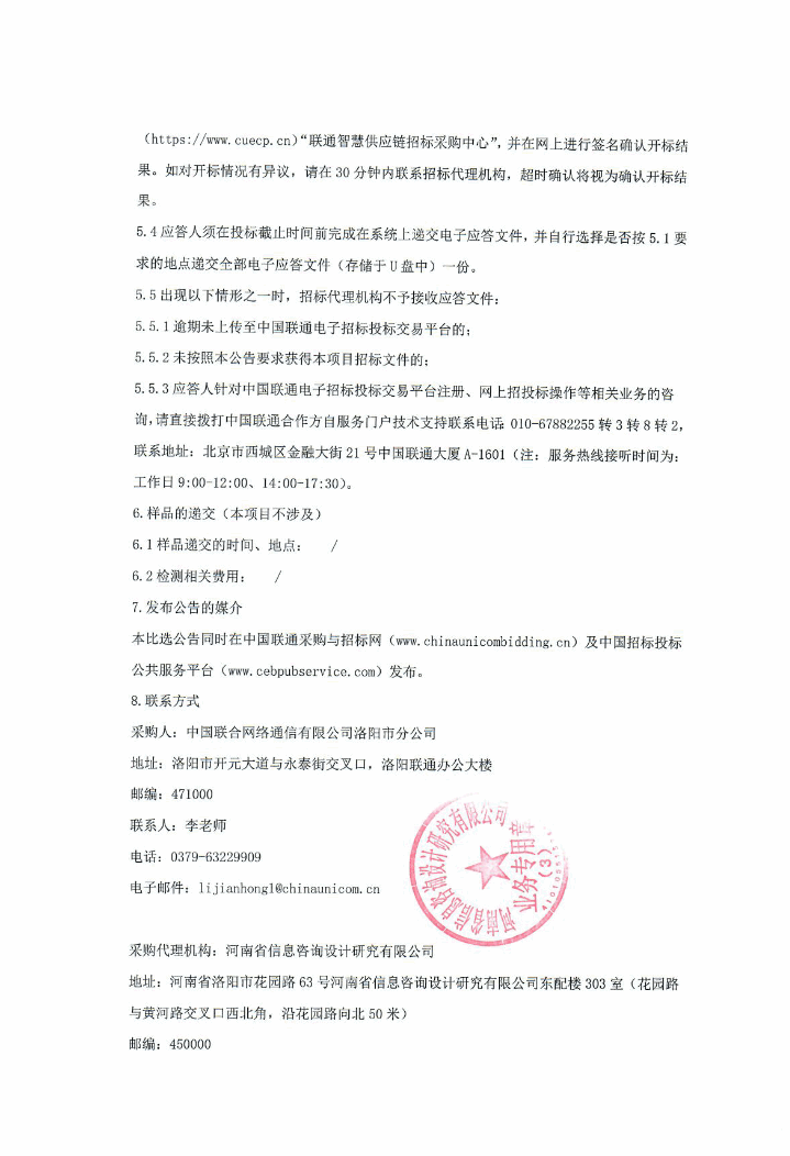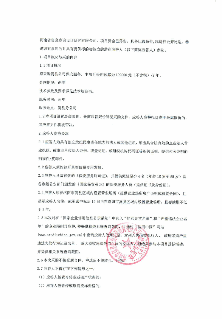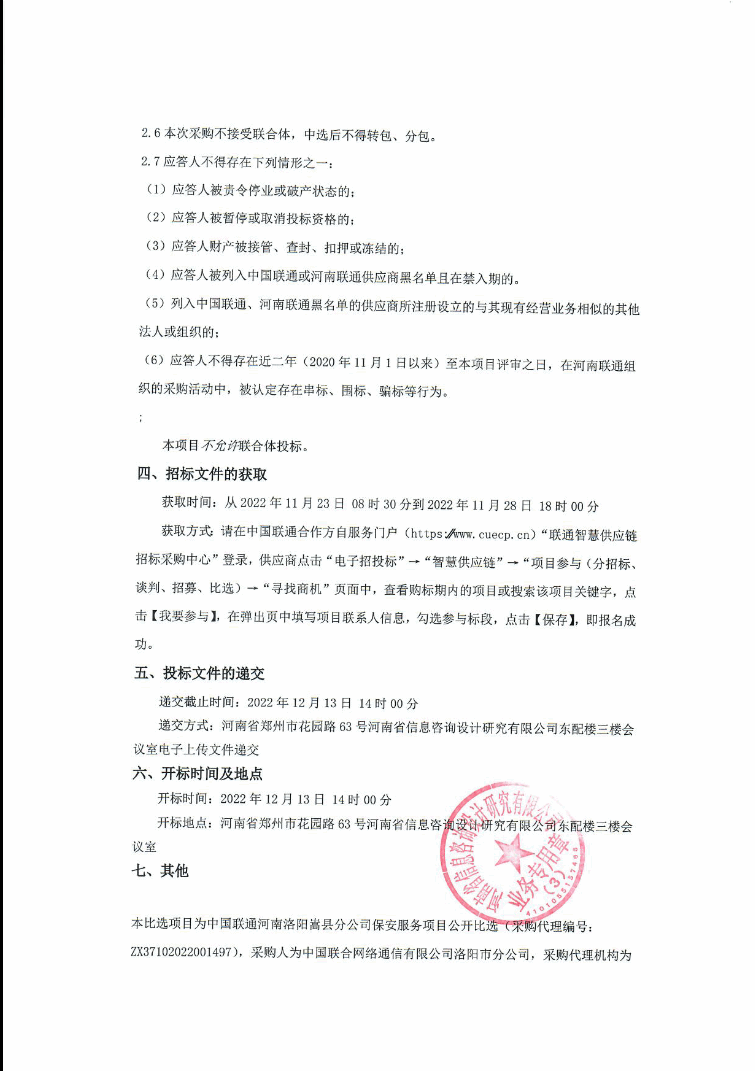 中国联通河南洛阳嵩县分公司保安服务项目公开比选公开比选公告