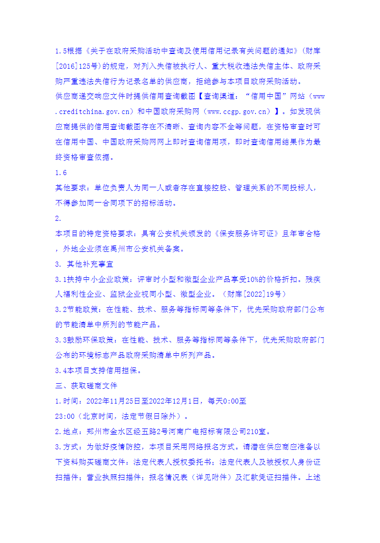 禹州发射基地安保服务采购项目竞争性磋商采购公告