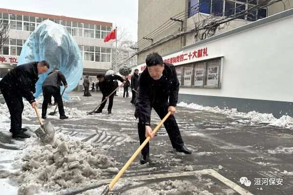 公司党委书记、董事长王高峰带领班子成员率先垂范,公司干部职工积极响应,有序展开清冰扫雪工作。大家不畏严寒,分工明确、团结合作,手持铁锨、挥动扫帚,铲除积雪、清扫路面,配合默契、干劲十足。现场“挥舞的铁锹”成为了皑皑白雪中暖心的一道风景线。由于准备充分,组织有力,发动及时,经过1个多小时的不懈努力,办公楼院内和门前三包积雪基本清理干净,保障了道路畅通安全,路面恢复了平日的干净和整洁。
