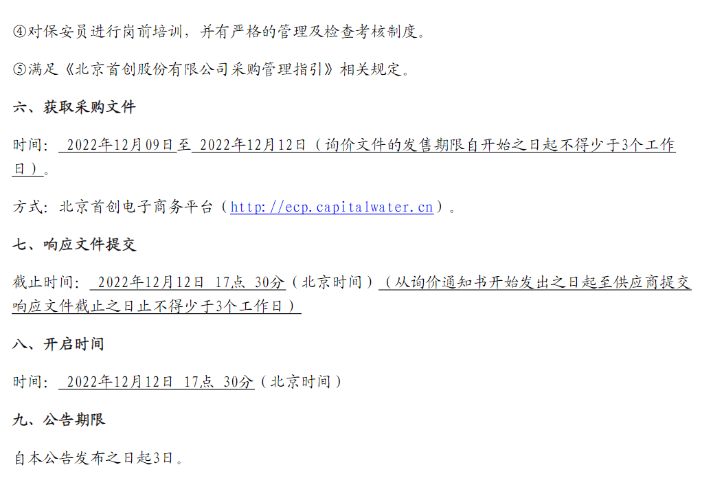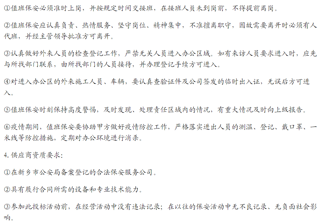 【河南新汇建设工程有限公司保安服务】询价公告