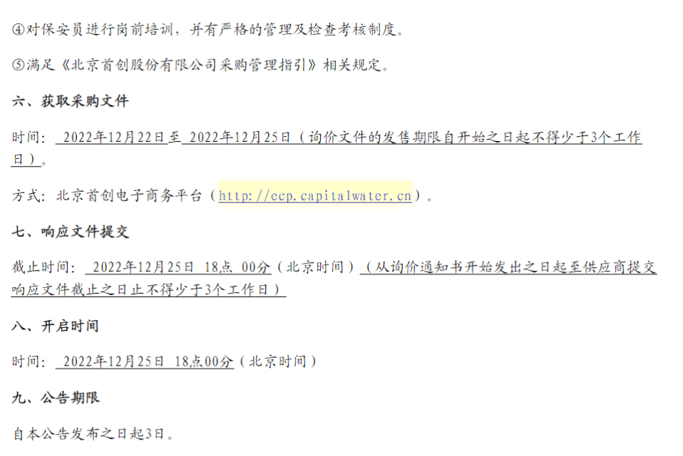 【河南新汇建设工程有限公司保安服务】询价公告