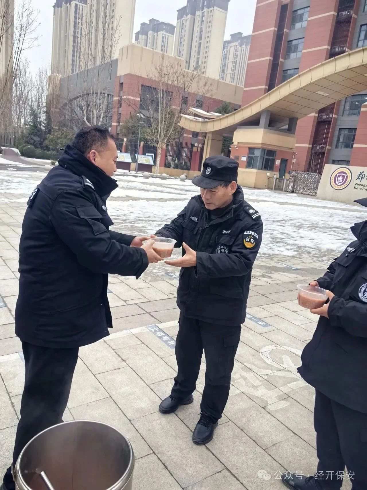 岗位上的保安队员都没有停下手里的工作,接过热乎乎的腊八粥时,大家都感动地连连点头,直呼腊八节第一碗粥真香:“这么早就来给我们送腊八粥,我们很感动,喝了身上暖和和的,心里也暖和!”