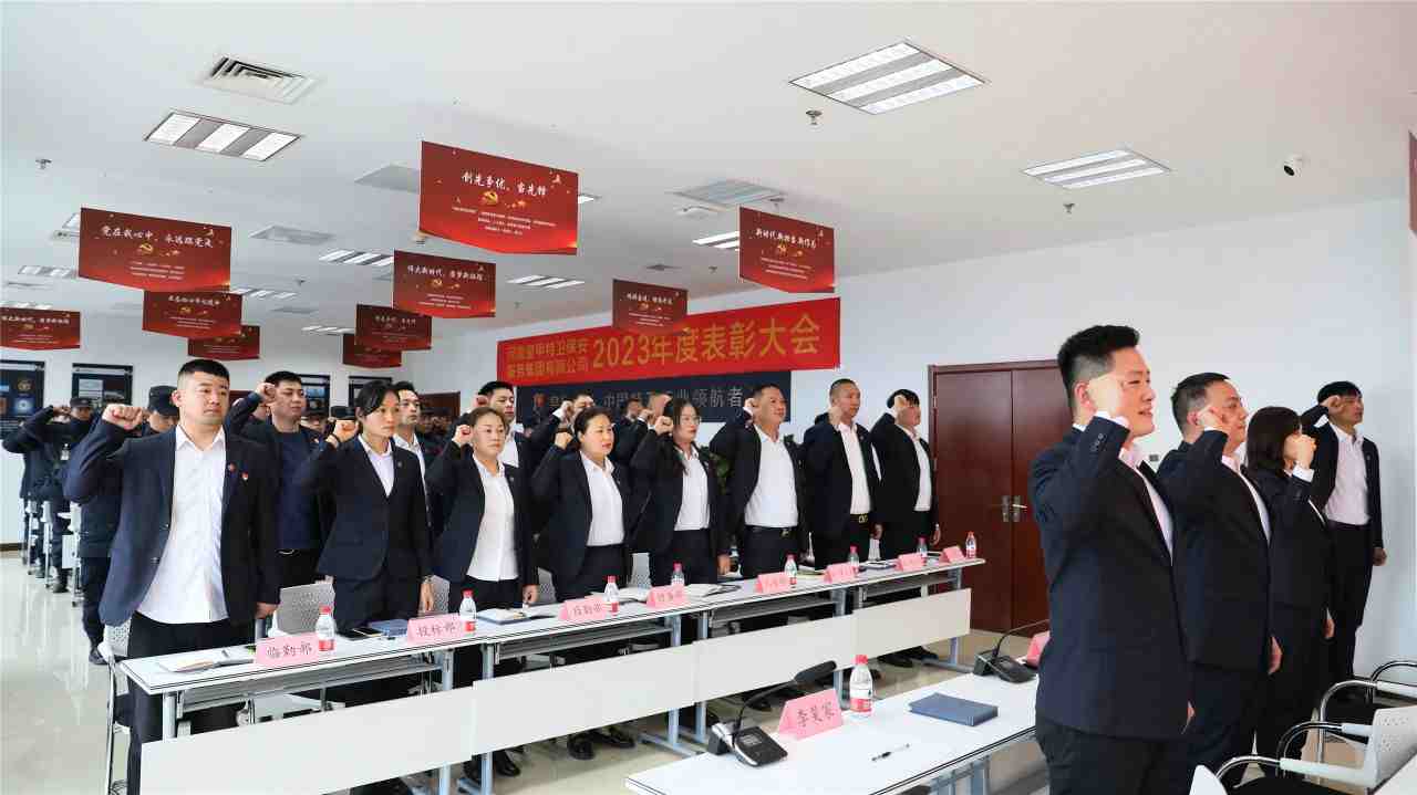 会议最后,与会人员集体宣誓,全员士气高涨,斗志昂扬。皇甲特卫保安集团公司2023年度工作总结暨表彰大会在铿锵有力的誓词中圆满结束。