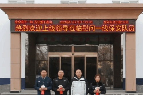 刘朝勇同志说:在过去的2023年,我们作为一名保安员,要时刻牢记保安人的使命和担当,舍小家、为大家,用坚守诠释担当,并叮嘱他们注意身体,在岗期间严格落实各项安全保卫措施,为客户单位的安全提供强有力的保障。