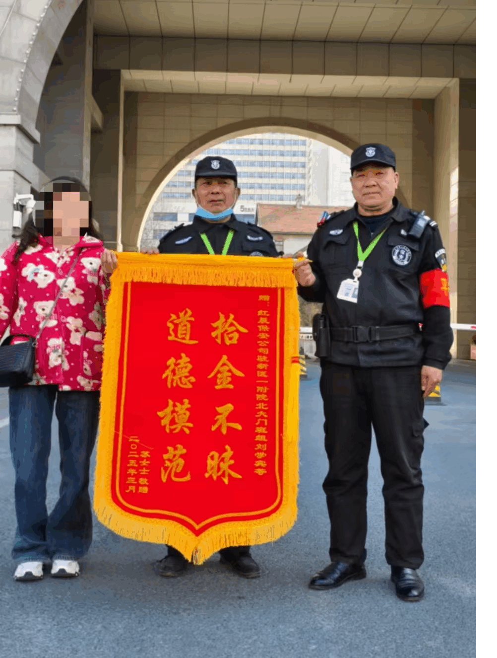 3月18日上午8时左右,卫辉市红晨保安驻新医一附院北大门保安班组,班长刘学宾在北大门口执勤时,发现地上有一个兰花手提包。他弯腰捡起手提包,心想失主此刻一定焦急万分,于是决定打开查看是否有能联系到失主的