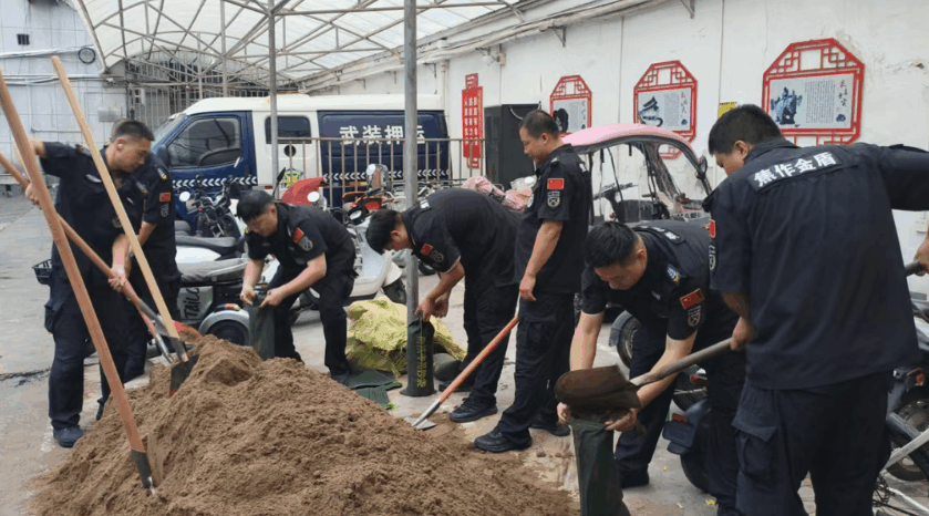 为积极落实押运部防汛工作要求,切实保障客户重要部位安全,9月10日,焦作金盾沁阳守押大队紧急行动,组织全体队员投身防汛工作。 在大队的统一指挥与调度下,各小组分工明确,迅速展开行动。一方面,队员们争分