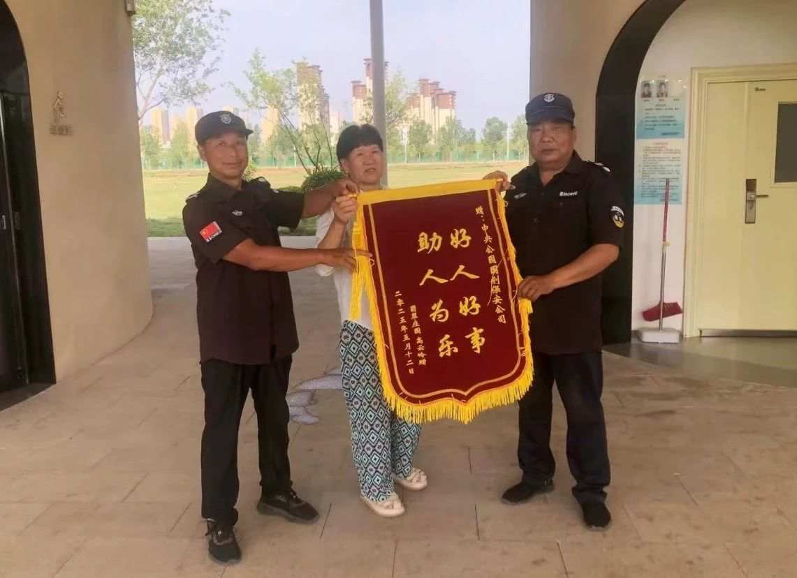 5月15日,一名市民将一面绣有“好人好事助人为乐”字样的锦旗送到了国创保安服务公司中央公园保安队。 原来,5月12日16时30分许,中央公园8号地块发生惊险一幕:该市民的三轮代步车失控滑入公园水系,经