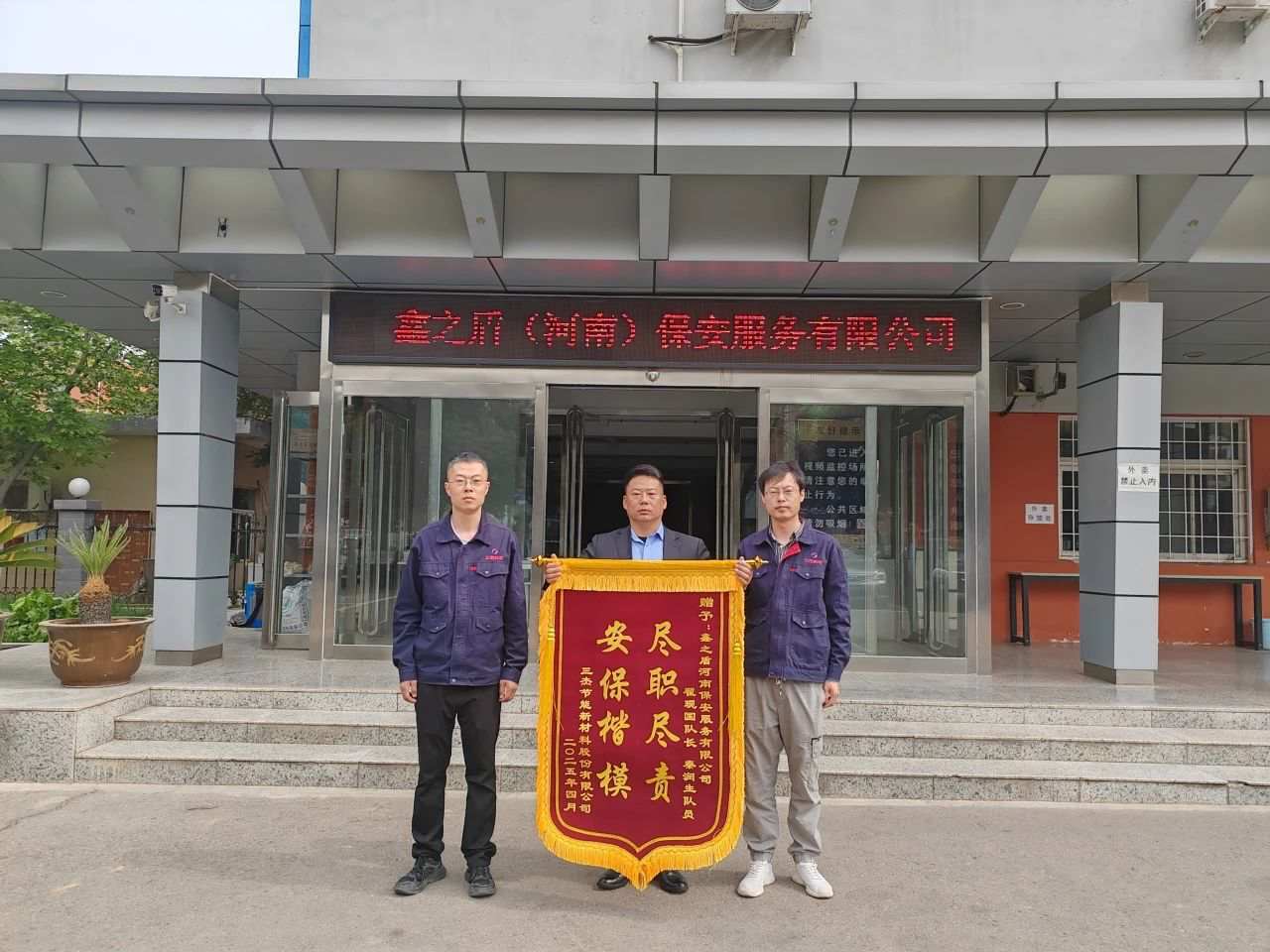 一面锦旗,承载着沉甸甸的信任;一次守护,诠释了夜以继日的责任。近日,我公司保安队员因快速处置突发火情,成功保护客户单位财产安全,获得甲方单位专程送来的"安保楷模尽职尽责"锦旗。 事