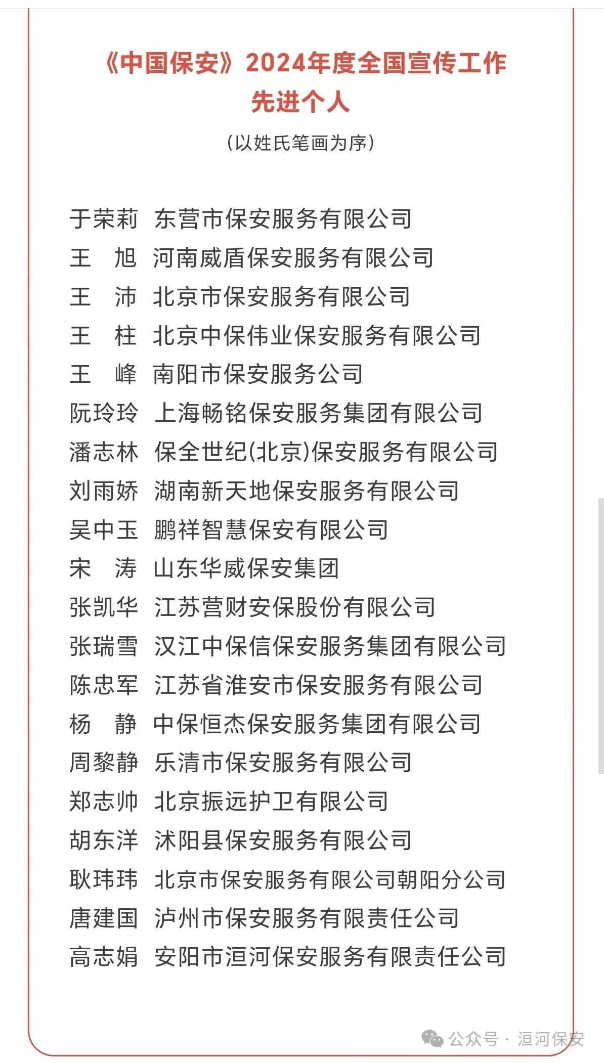 3月5日,《中国保安》杂志2024年度全国宣传工作优秀组织奖、优秀撰稿人、先进集体、先进个人评选揭晓,公司综合办公室高志娟同志喜获“全国宣传工作先进个人”荣誉。 《中国保安》杂志为中国保安协会会刊,由
