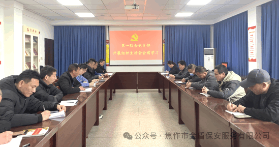 2月24日下午, 焦作市金盾保安服务有限公司第一联合党支部组织开展2024年度组织生活会会前集中学习,集团公司党委委员、支部书记张敏同志主持,支部全体党员、预备党员、入党积极分子参加。 会议传达学习习