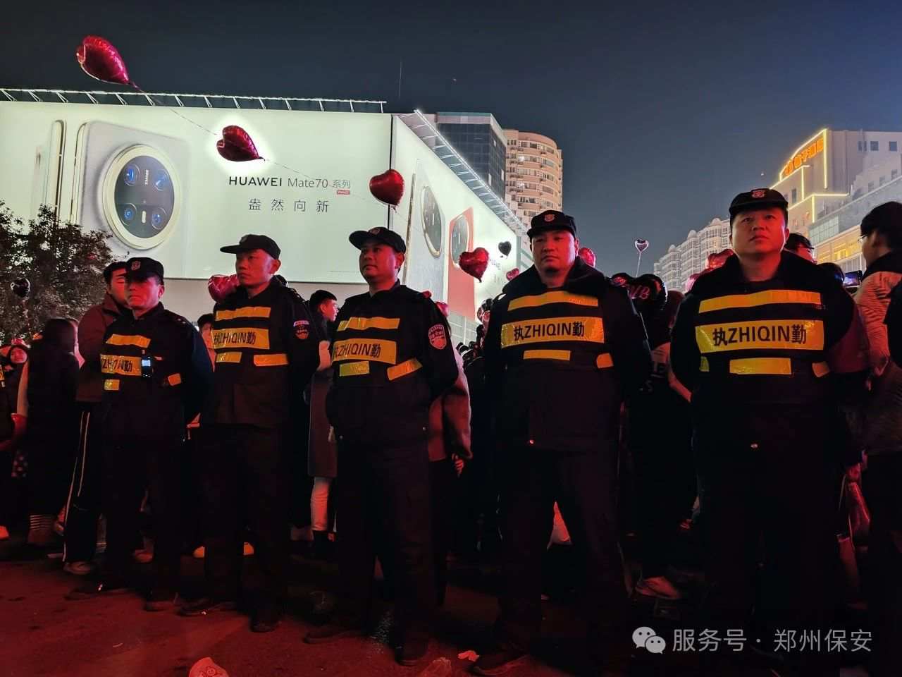 辞旧迎新之际,郑州二七塔开启跨年夜游活动。为保障活动安全顺利进行,郑保集团迅速响应郑州市公安局警保联勤联动工作部署,精心抽调300名保安队员参与现场执勤任务。集团党委书记、董事长段树军,党委委员、纪委