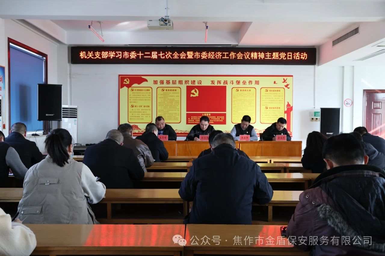 1月8日,焦作市金盾保安服务有限公司机关党支部组织开展学习市委十二届七次全会暨市委经济工作会议精神主题党日活动,支部全体人员参加会议,会议由支部书记孙乐贵主持。 会上大家共同学习了《习近平在中央经济工