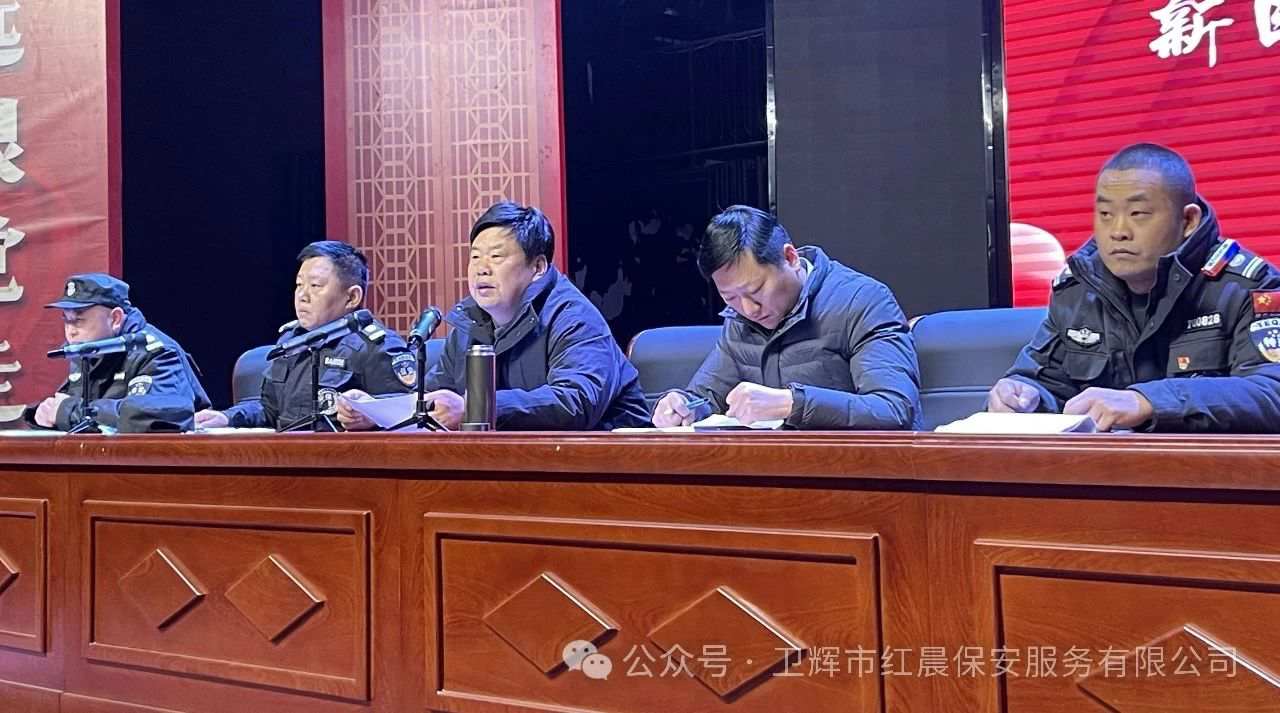 为了紧密跟随中国保安协会关于强化安全防范工作的《倡议书》步伐,卫辉市红晨保安服务有限公司于2025年1月4-5日召开工作会议,专注学习和领悟该《倡议书》的核心内容与精神要旨。 会上,公司董事长武术云亲