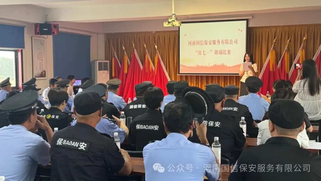 七一建党节 在这繁花似锦、充满活力的盛夏时节,我们迎来了伟大的中国共产党103岁生日——“七·一”建党节。今天河南国信保安服务有限公司隆重举行“庆七·一”朗诵比赛,以深情的诵读,抒发对党的热爱与敬仰,