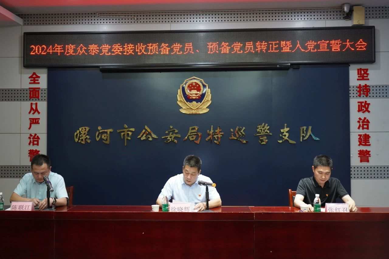 热烈庆祝中国共产党成立一百零三周年之际,中共漯河众泰保安服务有限公司委员会按照年度党建和发展党员工作安排,于2024年6月28日召开党委接收预备党员、预备党员转正暨入党宣誓大会。公司党委书记、总经理徐