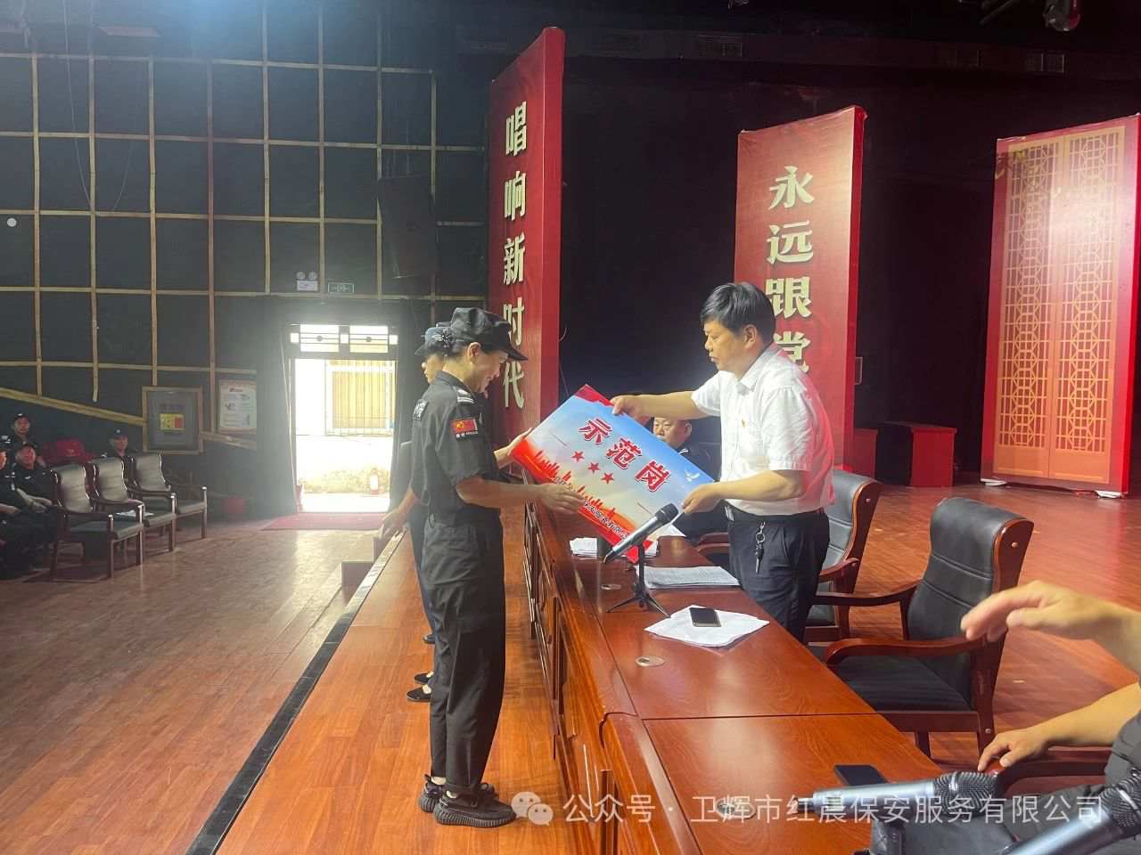 从2024年6月1日召开的5月份工作总结会上获悉:红晨保安公司将从6月份开始,实施示范岗位建设。会上,董事长武术云等领导为新医一附院规培楼岗点、达新源新材料岗点等7个岗点授牌。 示范岗位建设,是保安行