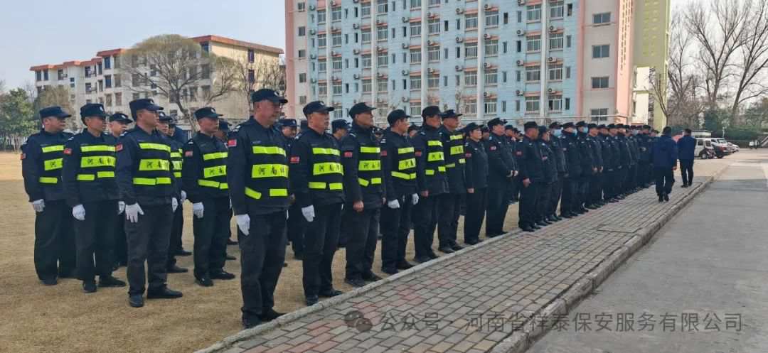 2024年3月9日,河南省祥泰保安服务有限公司组织漯河大学,漯河医专岗点百名保安队员,进行集训练兵培训活动。邀请巡防队给队员们讲解消防器械、防爆器械的使用。通过本次消防器械和防爆器械的培训,使学校岗点