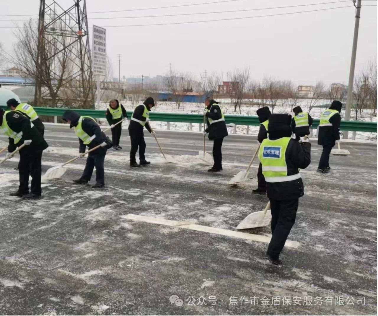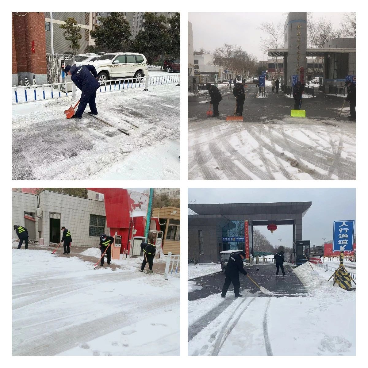 一场大雪突降河南,为车辆出行带来不便,2月21日7时10分,公司人防八部驻长济高速新乡平原站的保安队员们,在区域经理高铁晨的带领下,主动行动,积极采取措施,纷纷拿起铲雪工具清扫积雪,受到了高速站领导和