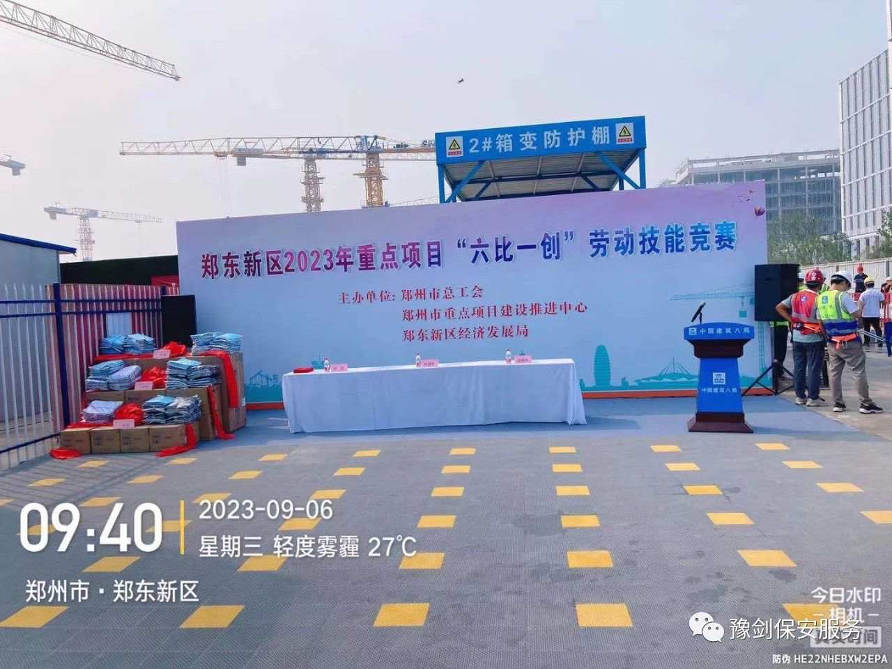 郑东新区2023年重点项目“六比一创”劳动技能竞赛活动在中建八局二公司科技谷北门召开,本次活动由郑州市总工会、郑州市重点项目推进中心、郑东新区经济发展局联合举办, 旨在提高市重点工程的工程质量和员工的