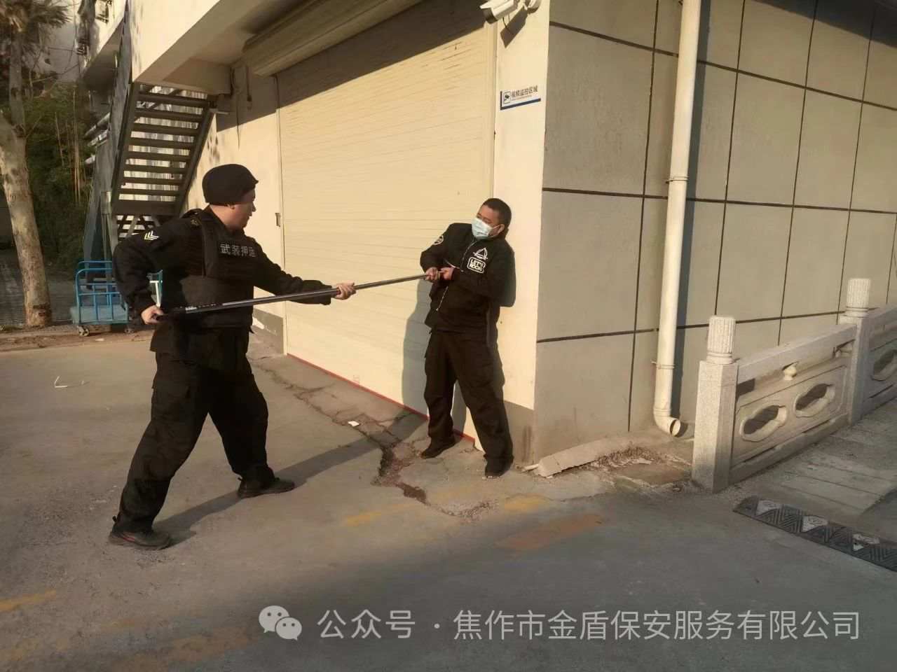 1月7日上午,建行守押大队联合建行保卫科、辖区焦东派出所民警,在建行枪弹库门口开展了反恐防暴应急演练。 上午9点40分,演练准时开始。一名由保安员扮演的“可疑人员”想进入枪弹库进行盗窃,枪弹库值守人员