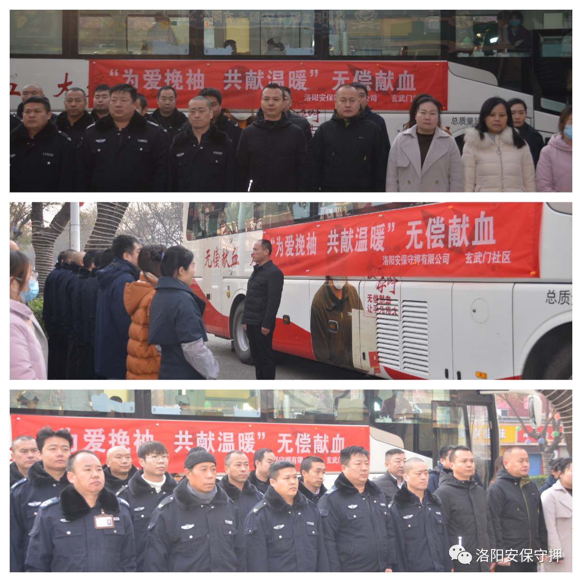 洛阳安保守押有限公司积极响应西关办事处和玄武门社区号召,于2023年12月20日上午组织广大员工进行以“为爱挽袖共献温暖”为主题的无偿献血活动。 上午九时许,洛阳市中心血站流动采血车如约而至,又一次来