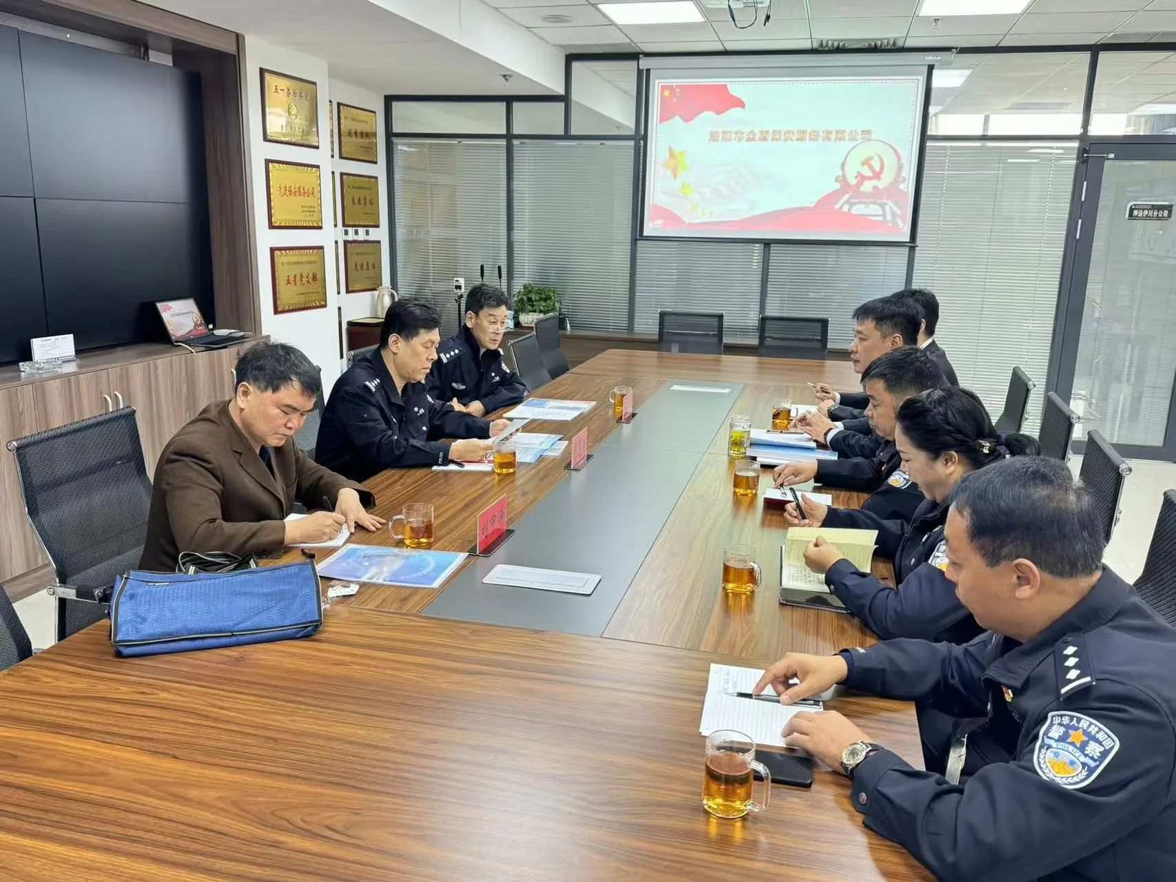2023年11月8日上午,洛阳市公安局治安和出入境管理支队党委委员、副政委李秀森及保安监管大队相关同志一行到洛阳市金盾保安服务有限公司走访调研,伊川县公安局、伊川县财源公司相关领导陪同调研。 此次调研