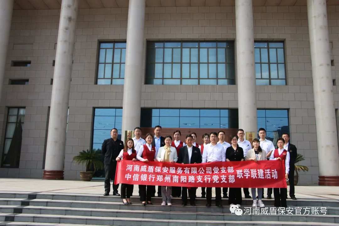 长期以来,河南威盾保安服务有限公司和中信银行郑州南阳路支行建立了牢固的战略伙伴关系,结下了深厚友谊,实现了共赢发展。为更进一步强化双方沟通联系,增强党员员工服务发展的责任意识,积极将银行党建与企业党建