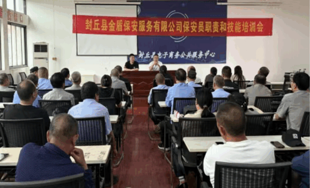 为进一步提升安保队伍的专业水平和实战能力,切实筑牢安全防护屏障,为平安封丘建设再立新功,封丘县金盾保安服务有限公司于2025年7月1日在电商园组织召开了保安员职责和技能培训大会,来自公司所属的37个服