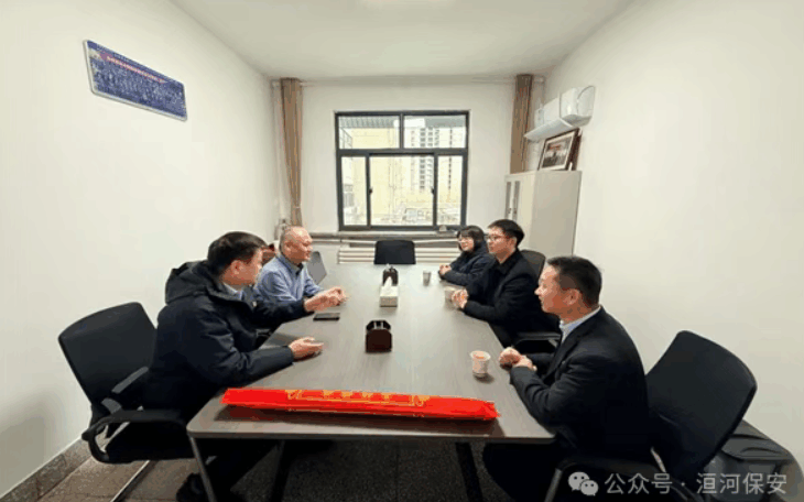 2025年12月31日上午9时,中国文字博物馆续建项目经理张旭东、办公室主任刘娇娇一行专程到访公司,将一面印着“洹河特卫护周全,风雨无阻守平安”的锦旗送至公司,对我公司驻馆安保团队2025年度的专业服