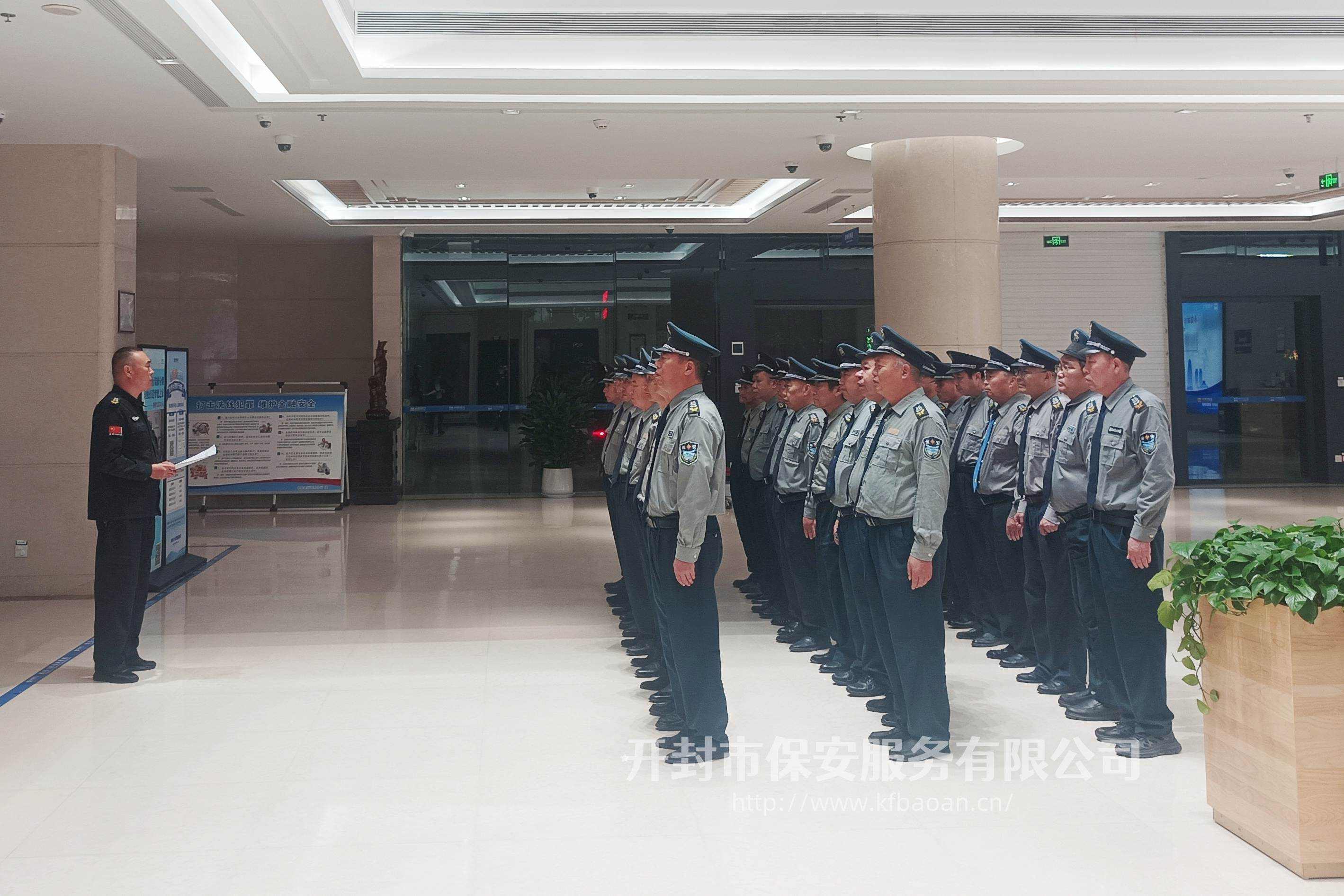 为强化业务岗点安全防范工作,切实做好国庆、中秋“双节”期间安保工作。9月24日,开封市保安服务有限公司驻勤保安队召开专项安全工作会议,同步开展反恐防暴培训和应急演练活动,为假期安保服务护航。 会议传达