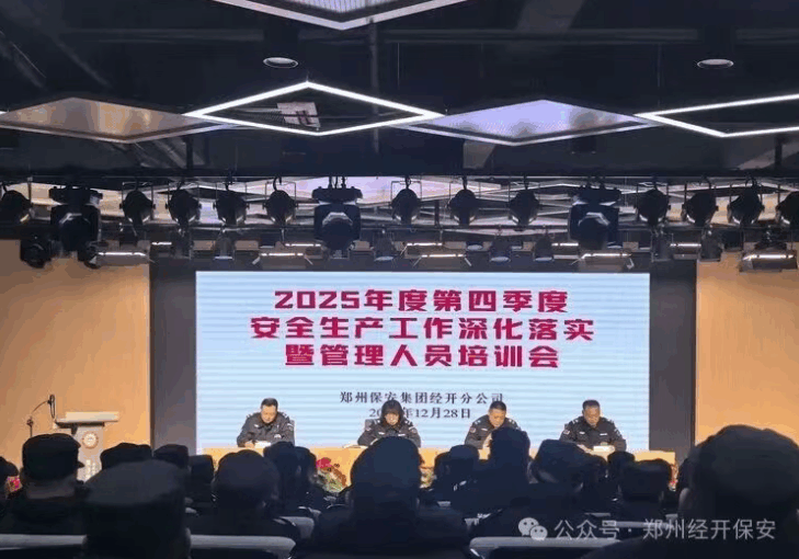 为进一步深化落实集团《关于加强安全生产工作的通知》精神,2025年12月28日上午9:30,郑州保安集团经开分公司在滨河第二小学会议室召开了“第四季度安全生产工作深化落实暨管理人员培训会”。公司班子成