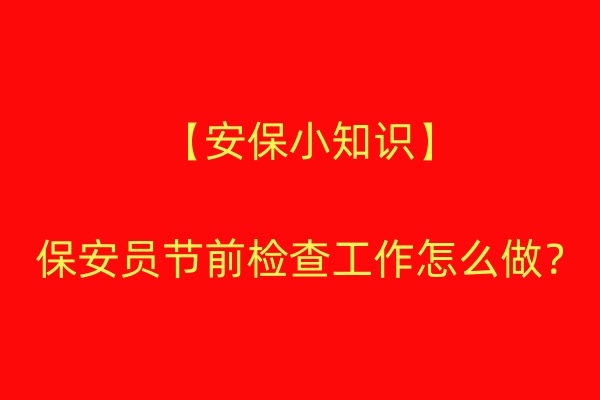 保安员节前检查工作主要有哪些要点,要注意哪些重点,我们一起来看看吧。 节前安全检查要点及规范 一、治安、消防管理 1.对项目服务中心(包括销售中心、商家、会所、办公区域等)进行治安、消防全面检查。 2