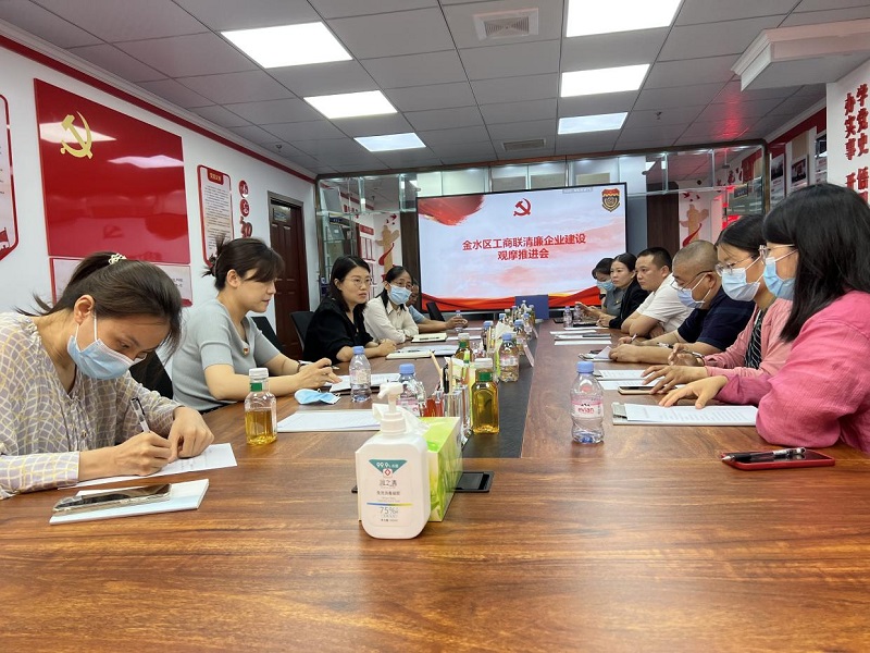 2022年8月12日上午,金水区工商联清廉企业建设观摩推进会在中保华恒保安服务集团召开。驻区统战部纪检组组长曹阳、副组长刘栓;金水区工商联副主席李静;未来路街道党工委委员岳振华以及部分企业代表参加了本