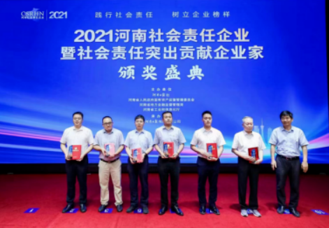 7月2日下午,由河南日报社、河南省人民政府国有资产监督管理委员会、河南省地方金融监督管理局、河南省工业和信息化厅联合主办的“2021河南社会责任企业及社会责任突出贡献企业家”推选活动颁奖典礼在郑州黄河