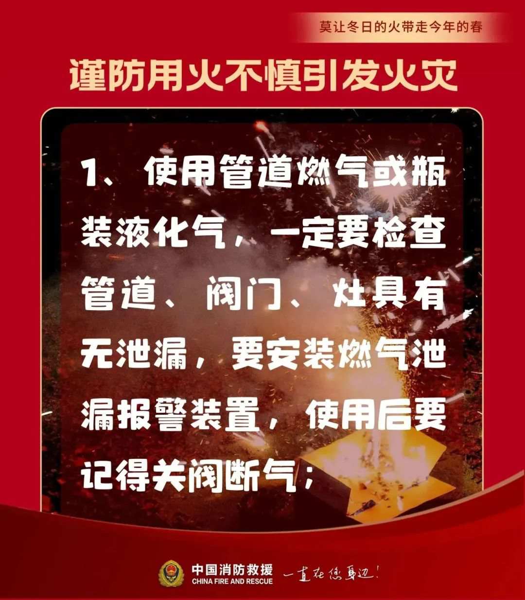 亲爱的市民朋友们 新春佳节来临之际 为了您和家人能度过一个 欢乐、祥和、文明的春节 温馨提示您 在节日期间加强自我防范 平安顺利过大年! 假期注意事项 01注意家庭防火 ·注意安全用火用电用气,不超负