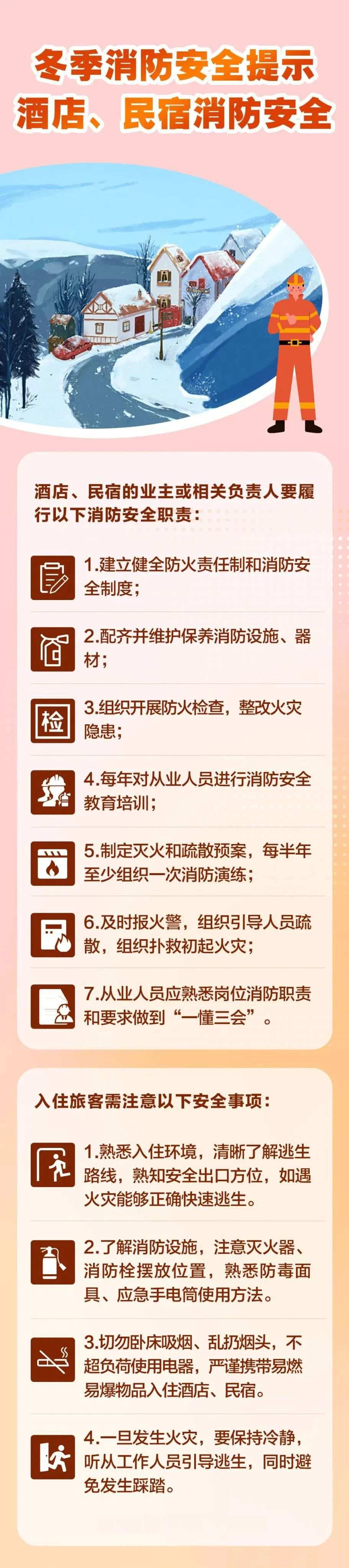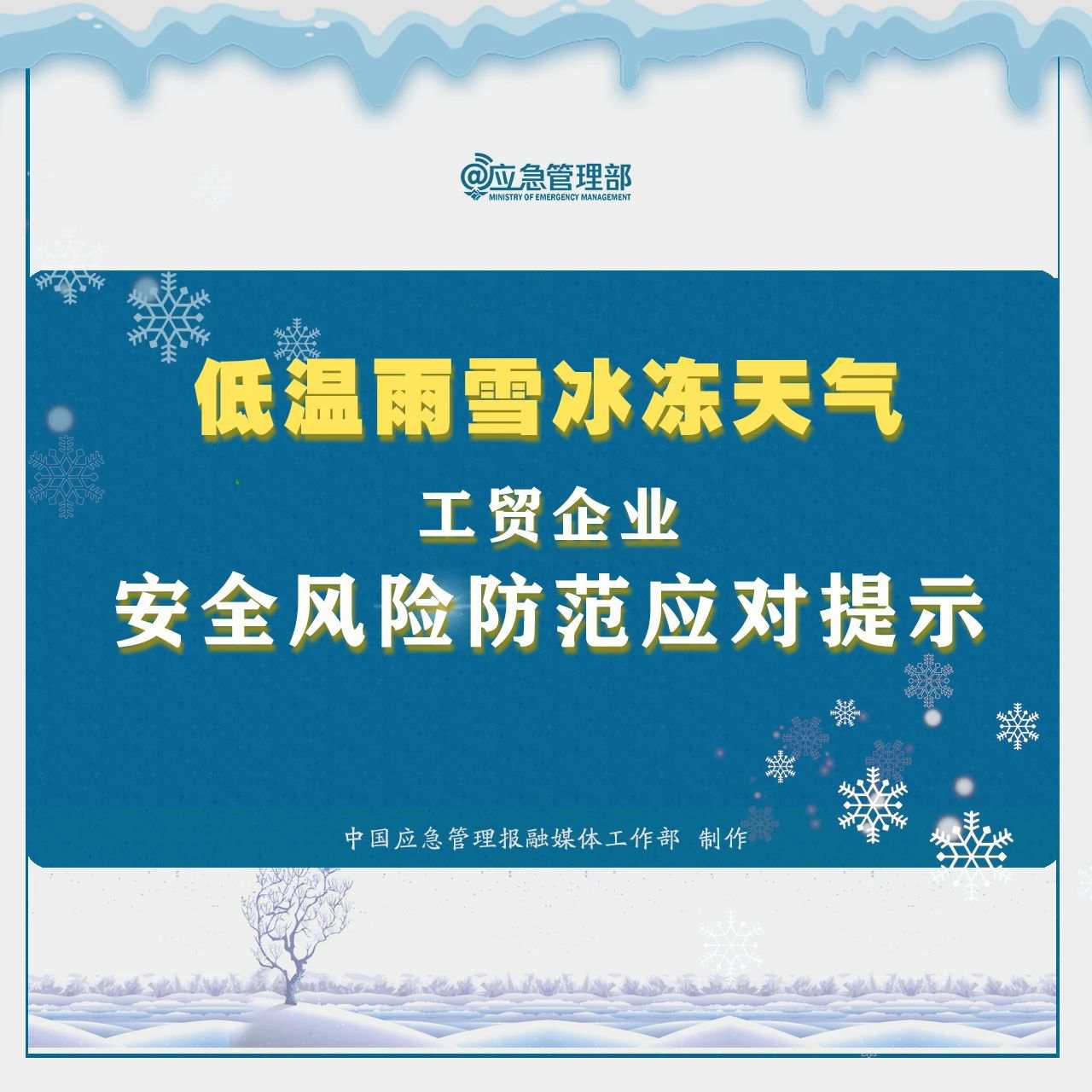 低温雨雪冰冻灾害天气安全提示 注意用火用电用气安全,谨防防寒取暖引发火灾、电气事故和煤气中毒; 长时间户外活动应加强防冻保暖,谨防失温、冻伤; 长途和野外驾车应做到油液充足、车辆无故障,谨防冰雾天气、