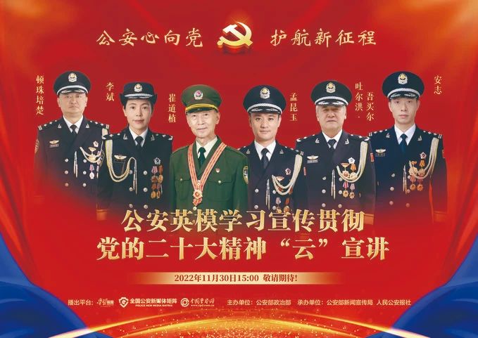 11月30日下午,“公安心向党、护航新征程”公安英模学习宣传贯彻党的二十大精神“云”宣讲线上举行,6位公安英模代表与全国公安民警相聚云端,分享学习宣传贯彻党的二十大精神的感受体会和工作打算。河南460
