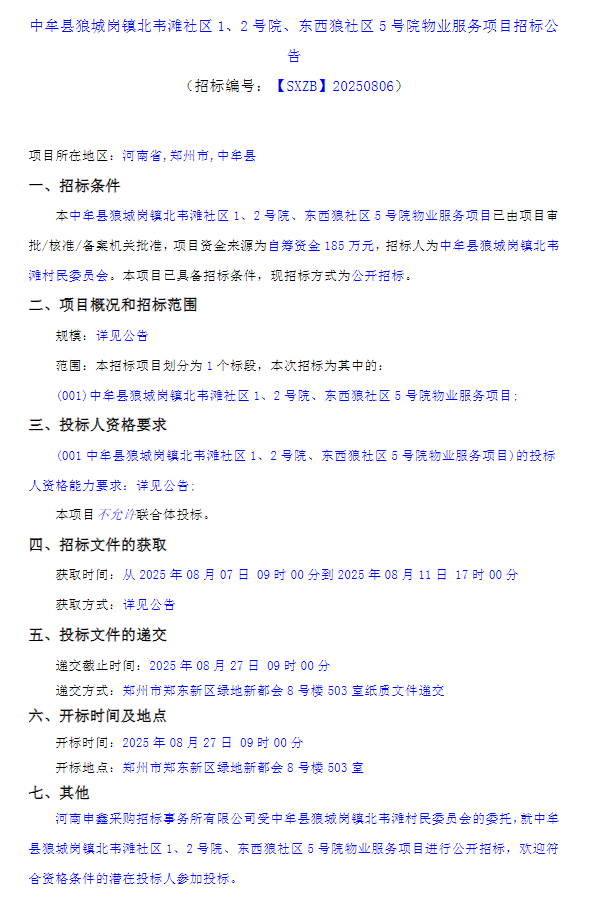 我部就以下项目进行国内公开招标,采购资金已全部落实,欢迎符合条件的供应商参加投标。 一、项目名称:某部物业服务项目 二、项目编号:2025-VGBOHR-F1023 三、项目概况: 包号 服务名称 服